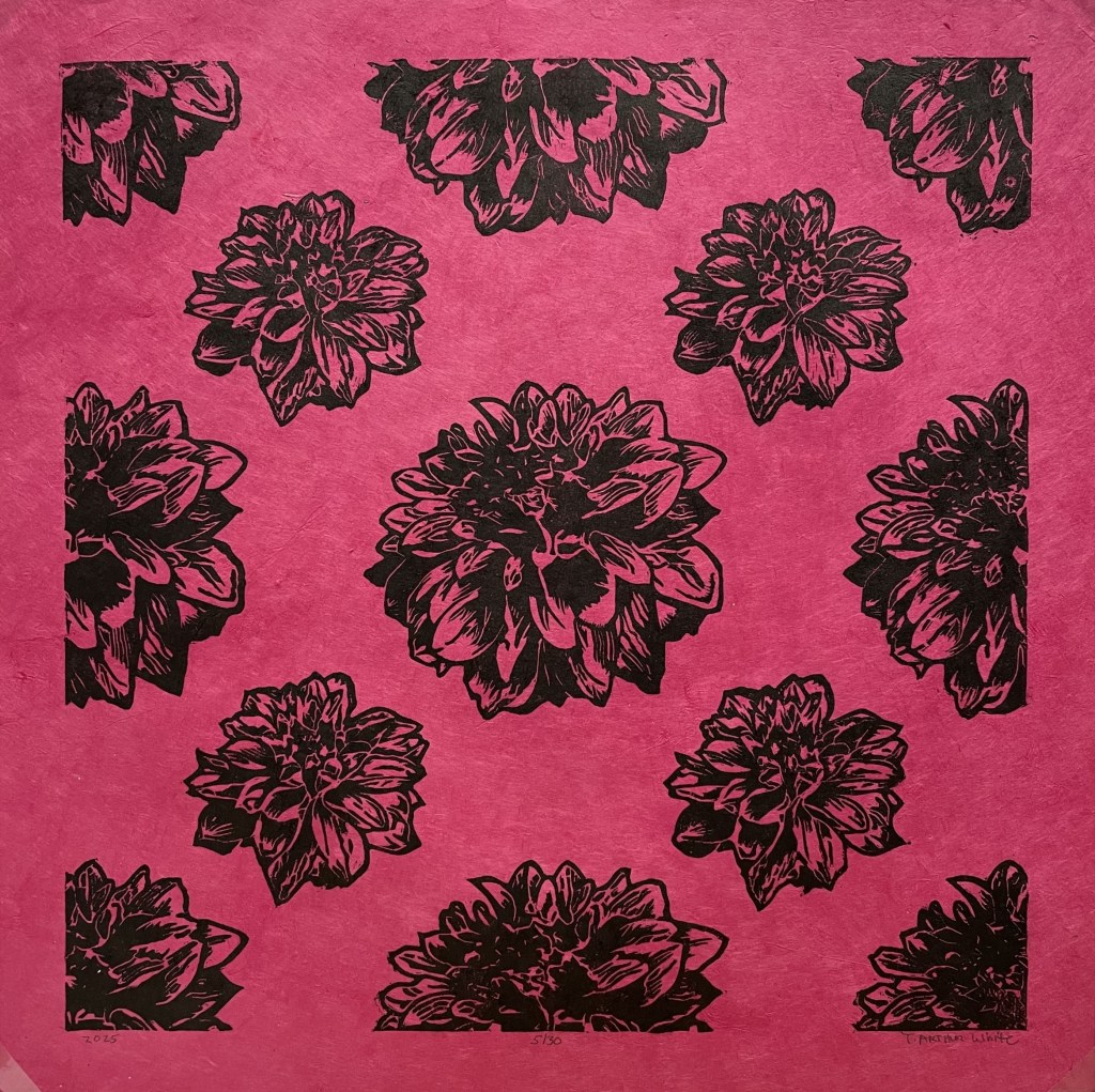 Proof of life, again! It’s been a busying summer and now just two weekends to go before the Lake Superior 20/20 Studio & Art Tour. Stop by the shop and see what I have been working since last year, including my new Lino print, “Low-Maintenance Dahlias” on the left.